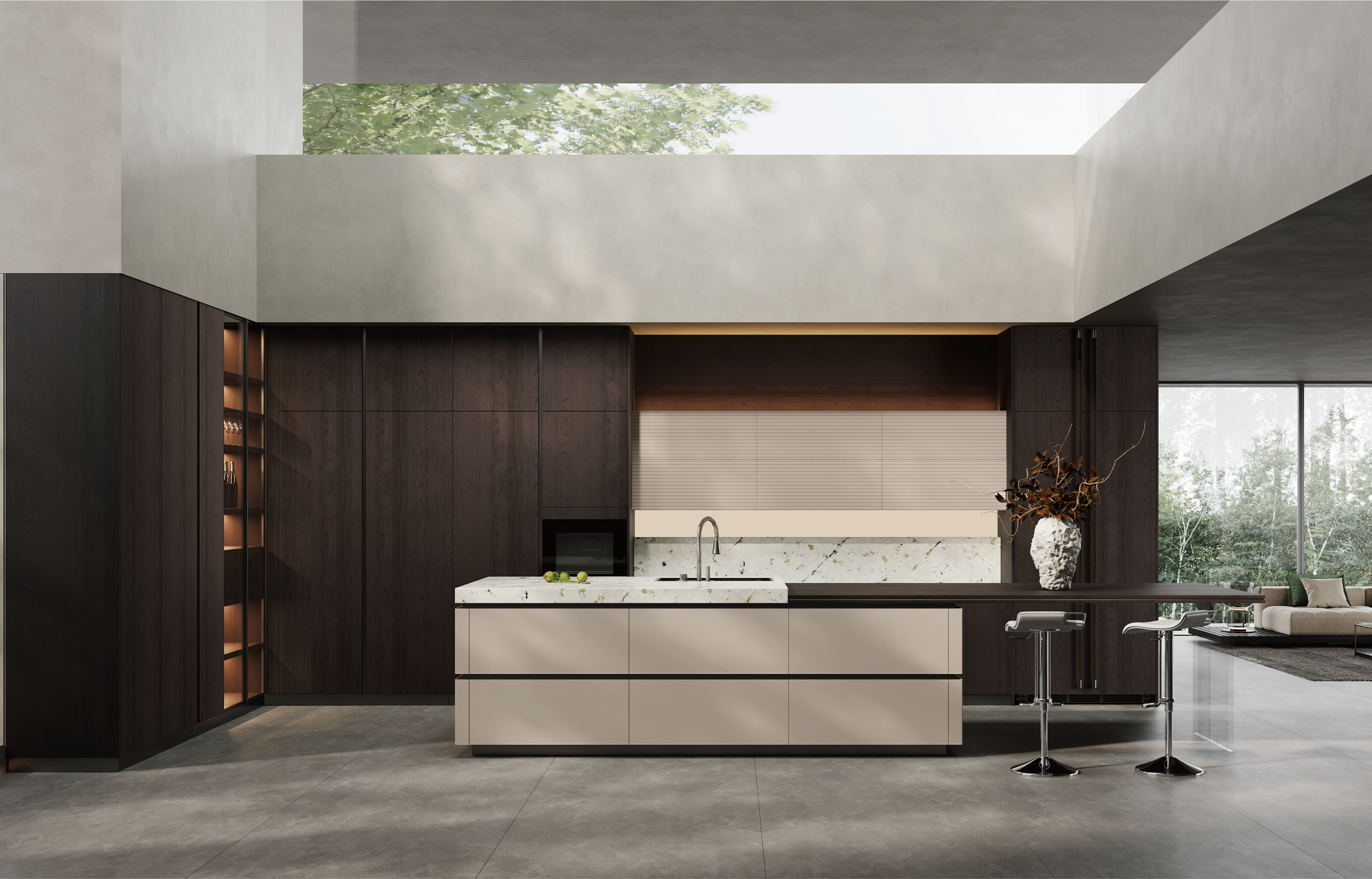 通过Agin games厨柜量体裁柜,定制出适合主厨下厨的烹饪区和洗涤区的舒适高度。